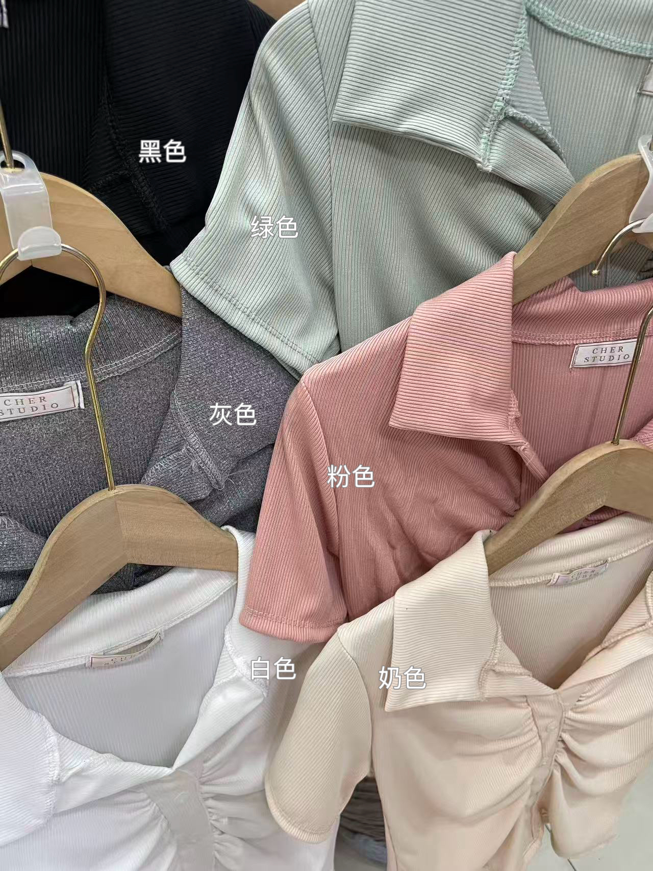 【 READY STOCK 】FL10 福利款 ~ 假排扣皱褶翻领上衣